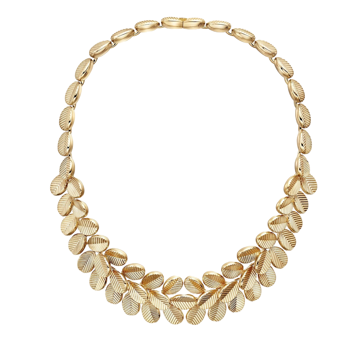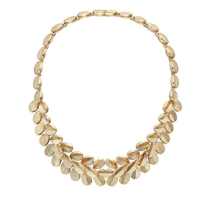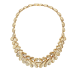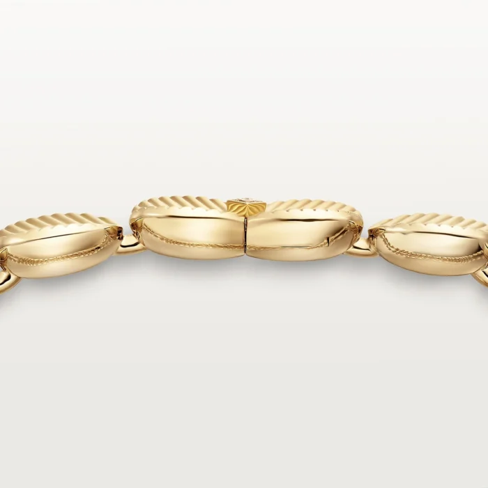 This refined necklace from Cartier’s Grain de Café collection features rounded, smooth shapes resembling coffee beans. Its minimalist design combines elegance and simplicity, making it a versatile piece for both day and evening wear. The necklace is available in precious metals like 18k gold, often adorned with diamonds for a touch of luxury.